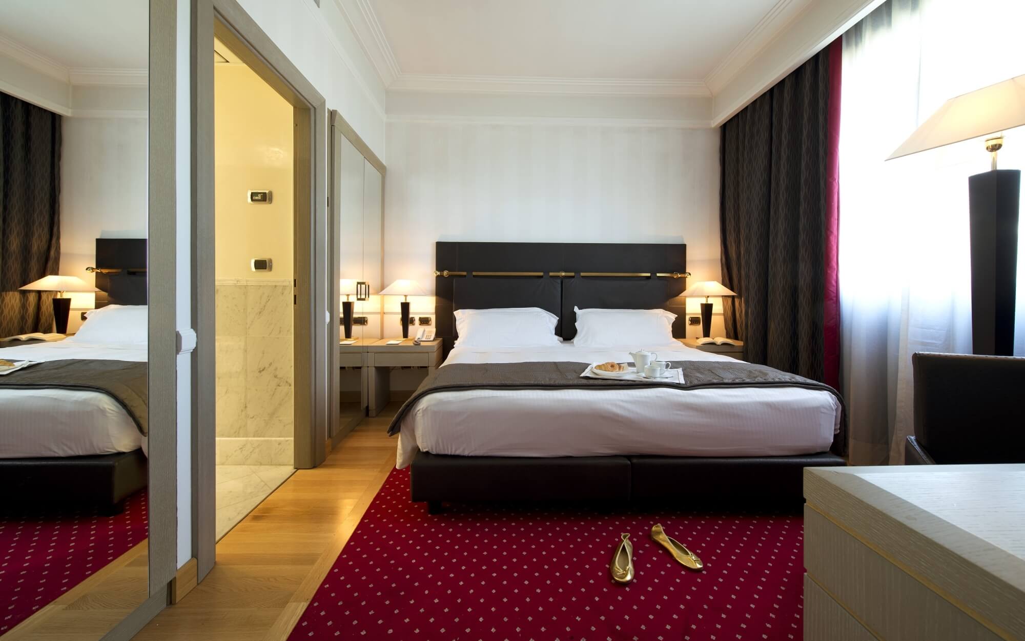 La raffinata hall, arredata con materiali all’avanguardia, decorata con specchi e marmi pregiati ed impreziosita con oggetti di fine antiquariato, vi darà un caldo benvenuto e sarà per i vostri occhi un’esperienza visiva incomparabile.