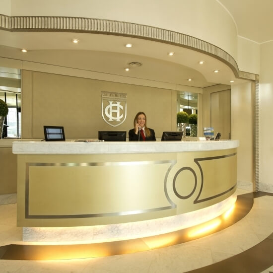 La raffinata hall, arredata con materiali all’avanguardia, decorata con specchi e marmi pregiati ed impreziosita con oggetti di fine antiquariato, vi darà un caldo benvenuto e sarà per i vostri occhi un’esperienza visiva incomparabile.
